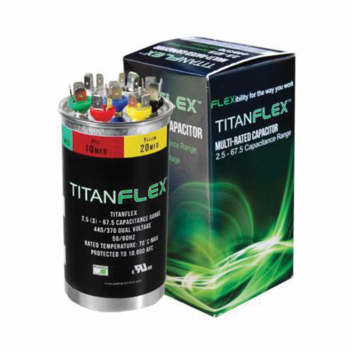 Packard TitanFlex® Universal Multi-Rated Motor Run Capacitor, 440/370 VAC, 2.5 - 67.5 mfd, 2.6 Inch Dia x 4.8 Inch H