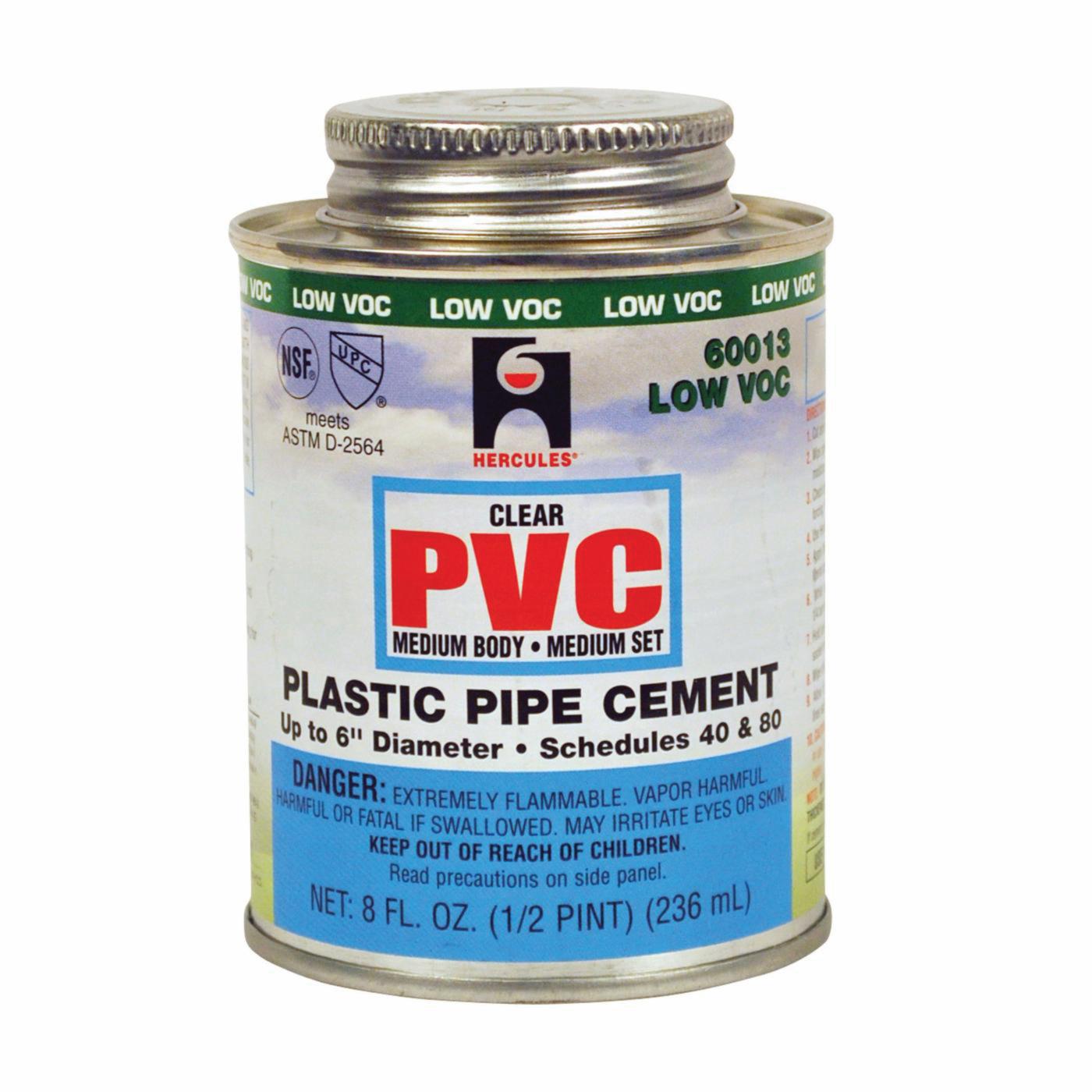Oatey SCS Hercules® 60013 Medium Body Medium Set PVC Pipe Cement, 8 oz Can, Clear, Blue Label