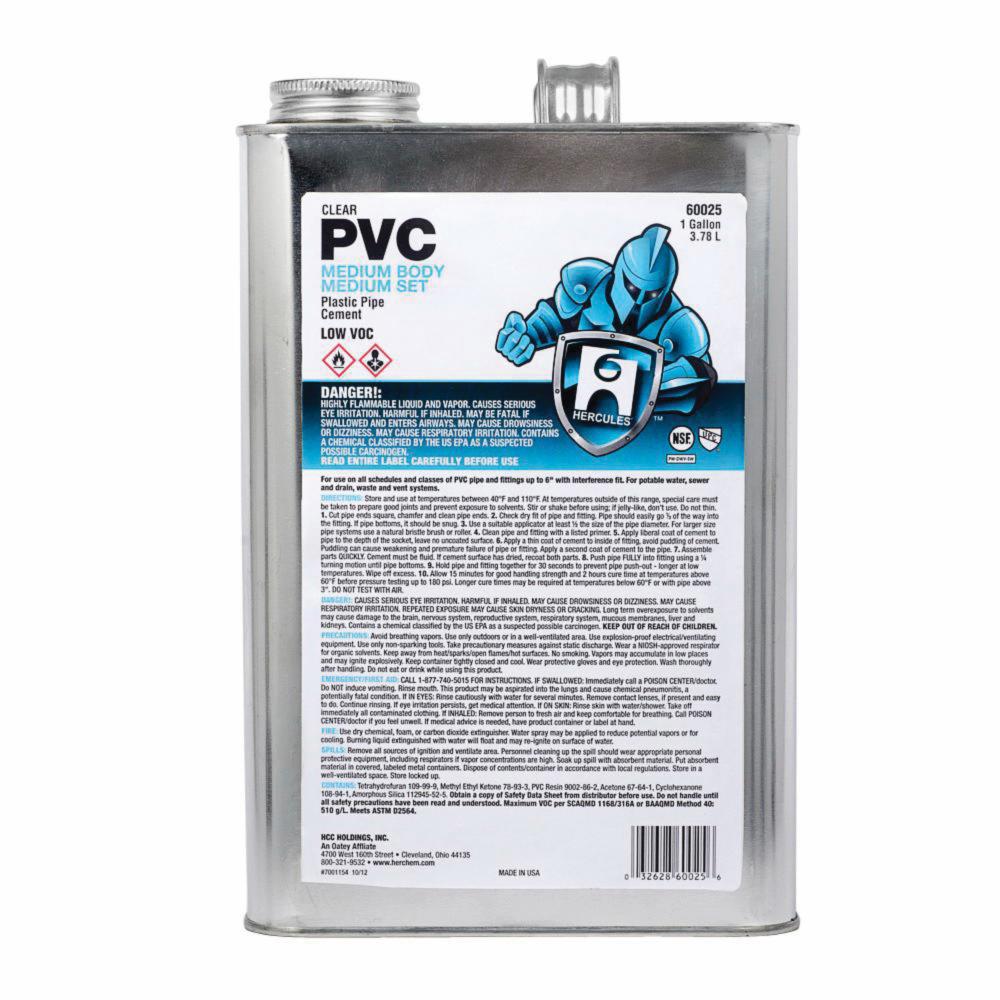 Oatey SCS Hercules® 60025 Medium Body Medium Set PVC Pipe Cement, 1 gal Can, Clear