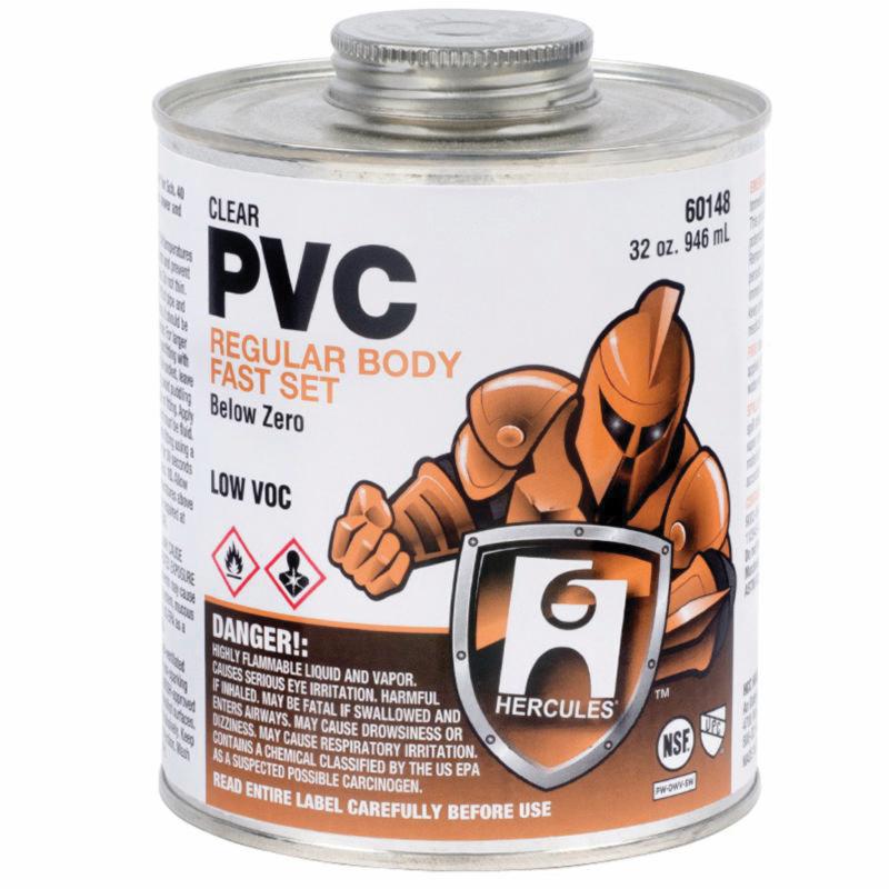 Oatey SCS Hercules® 60148 Regular Body Fast Set PVC Pipe Cement, 32 oz Can, Clear