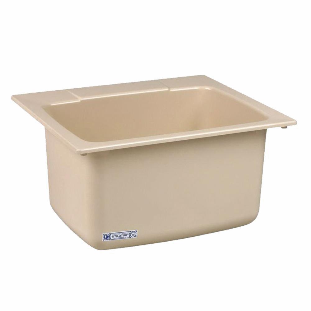 Mustee 10 Self-Rimming Molded Fiberglass Utility Sink, 22 x 25 Inch, 4 or 8 Inch Centers, Bone