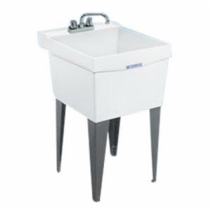Mustee ELM® UTILATUB® 17F Fiberglass/Crushed Stone Floor Mount 1-Bowl Laundry/Utility Tub, 23 Inch L x 23-1/2 Inch W x 34 Inch H, White