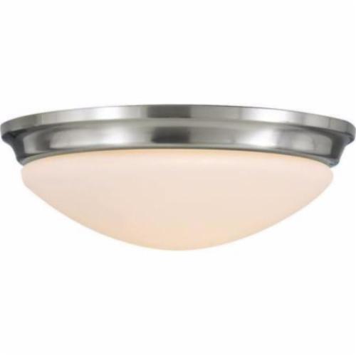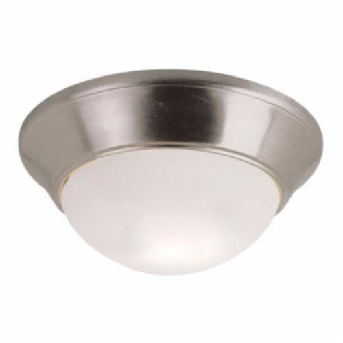 This 2-light flush mount easily brightens any room. The Brushed Nickel finish and White Frosted glass are versatile and complement any style.