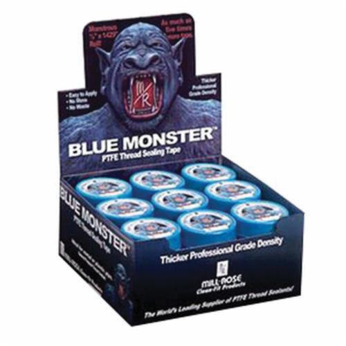 Blue Monster PTFE thread seal tape is a thicker, denser, general-purpose thread seal tape that comes in a monstrous 1429 Inch roll. That's 5 times more tape than conventional rolls of low-density thin tapes. Fewer wraps are necessary to affect a leak-proof seal and it applies easily. No waste and no re-taping make sealing joints a breeze. Now available in a smaller roll, Mini-Monster PTFE thread sealant tape.