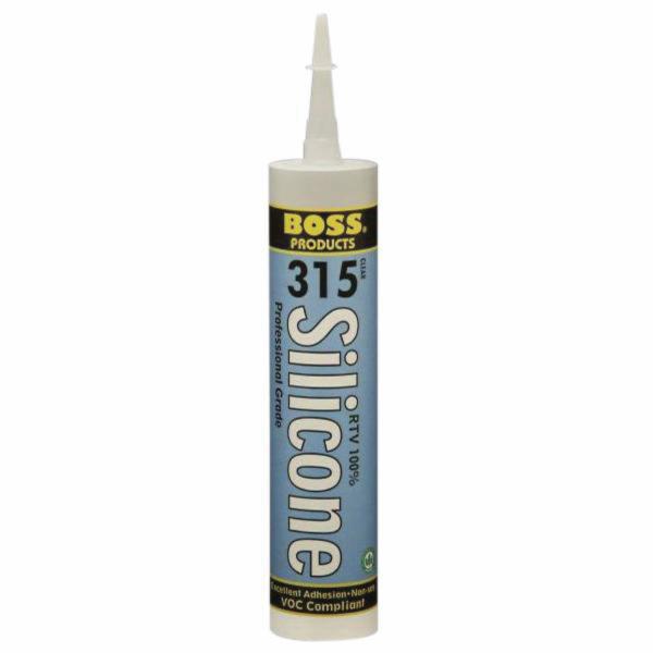 BOSS® 315 RTV 100% silicone rubber adhesive/sealant is a paste-like, one component material which cures to a tough, rubbery solid when exposed to moisture in the air. Since it will not flow of its own weight, this sealant can be applied overhead or on sidewall joints and surfaces without sagging, slumping or running off. It will adhere to clean metal, glass, most types of wood, silicone resins, vulcanized silicone rubber, ceramic, natural and synthetic fiber, as well as painted and many plastic surfaces. BOSS® 315 has good resistance to weathering, vibration, moisture, ozone and extreme temperatures. It may be applied in sub-zero weather without loss of extrusion or physical property characteristics. Fully cured BOSS® 315 can be used for extended periods at temperatures up to 400 deg F. BOSS® 315 is available in a variety of colors including clear, white, black, aluminum, almond and bronze.