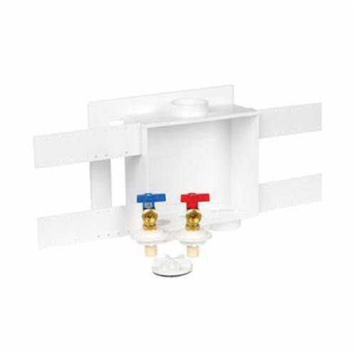 Oatey SCS Quadtro® 38533 Polystyrene Washing Machine Outlet Box with 1/4 Turn Valve, 1/2 Inch PEX, 24-3/4 Inch L x 10-1/8 Inch W x 3-5/8 Inch H