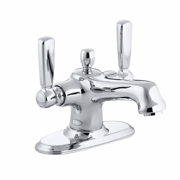 Kohler Bancroft® K-10579-4 Solid Brass 2-Lever Handle Monoblock Bathroom Sink Faucet With Escutcheon and Handles, 1.5 gpm at 60 psi, Polished Chrome