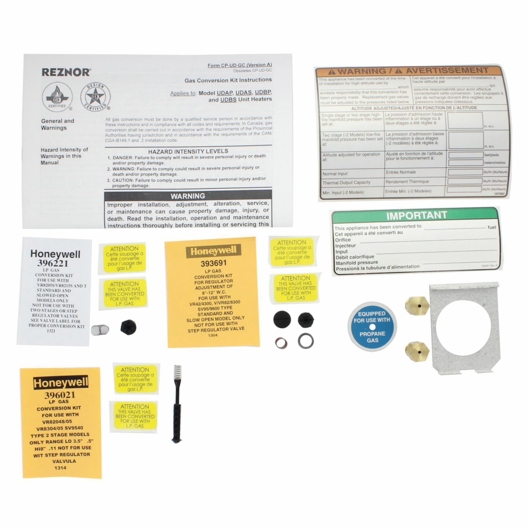 Reznor 269836 Natural To LP Gas Conversion Kit For Size 60 - 75 Model UDAP/UDAS Unit Heaters