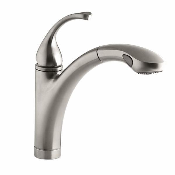 Kohler Forte® K-10433 Metal 1-Lever Handle Kitchen Faucet with 10-1/8 Inch Pullout Spray, 1-Hole, Vibrant® Stainless