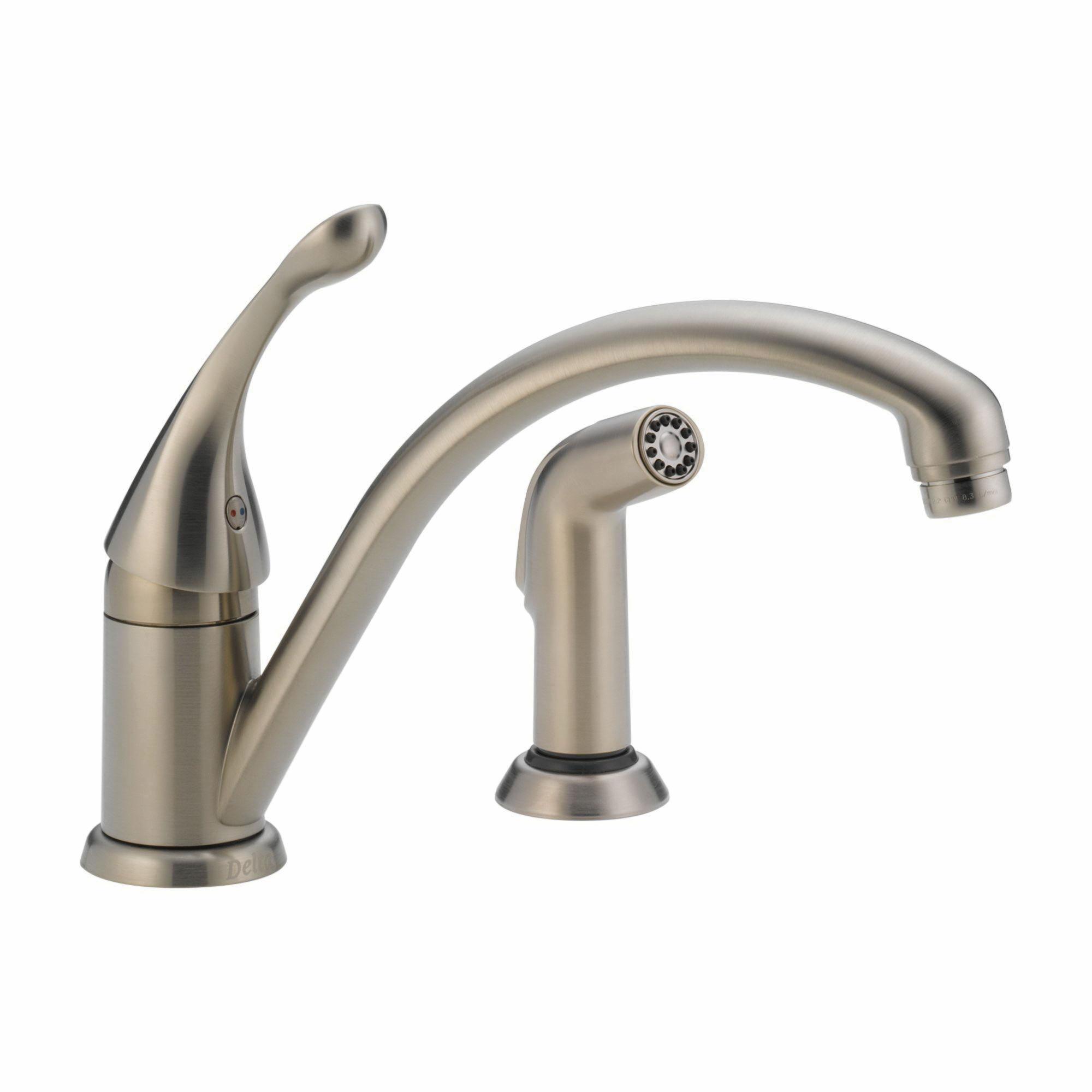 Delta Collins™ 441-DST 1-Lever Handle Brass Kitchen Faucet With Sidespray, 4 - 18 Inch Centers, Brilliance® Stainless