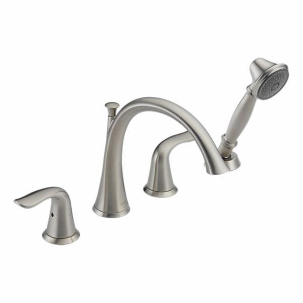Delta Lahara® T4738 Series Brass 2-Lever Handle Roman Tub Faucet Trim With Hand Shower, 2 gpm, Stainless