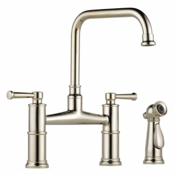 Delta Artesso 62525LF-PN Brass 2-Lever Handle Bridge Kitchen Faucet with Spray, 1.8 gpm, 2, 3 or 4-Hole, Polished Nickel