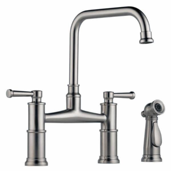 Delta Artesso 62525LF-SS Brass 2-Lever Handle Bridge Kitchen Faucet with Spray, 1.8 gpm, 2, 3 or 4-Hole, Brilliance® Stainless