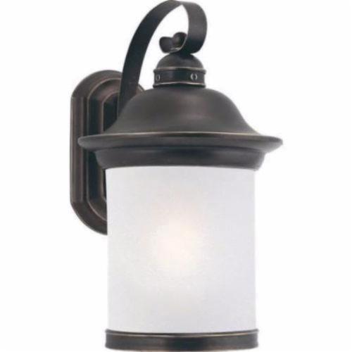Seagull Lighting Hermitage 1-Light Outdoor Wall Lantern in Antique Bronze with White Frosted Glass