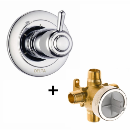 Kit Includes: Delta T11800 Brass 3-Setting Diverter Trim, Chrome AND R11000 3 and 6-setting Diverter Rough-In Valve