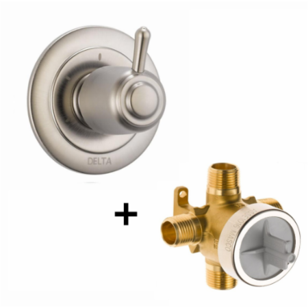 Kit Includes: Delta T11800-SS Brass 3-Setting Diverter Trim, Stainless Steel AND R11000 3 and 6-setting Diverter Rough-In Valve