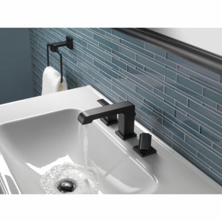 Delta Ara® 3567-MPU-DST Deck Mount Brass 2-Lever Handle Widespread Bathroom Faucet, 1.2 gpm, Matte Black
