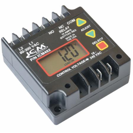The ICM492 constantly monitors line voltage and protects single phase equipment against low and high voltage conditions and rapid short cycling due to voltage fault or power interruption. Its easy view, backlit digital display makes it user friendly to read and monitor voltage conditions and adjust parameters to meet specific needs.
