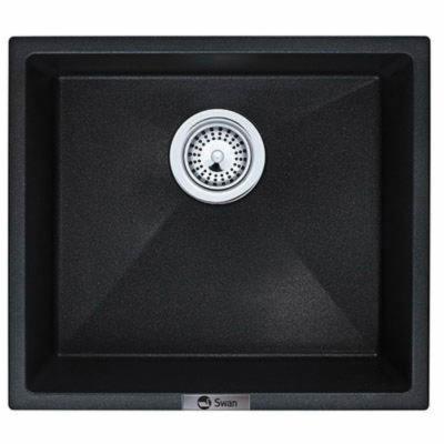 Swan QZDM-1816-077 Granite Kitchen Sink, 18 x 16 Inch, Nero